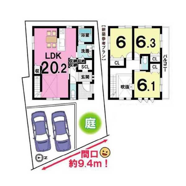 (1階:LDK20.2帖 2階:洋室6.3帖/洋室6.1帖/洋室6.0帖)