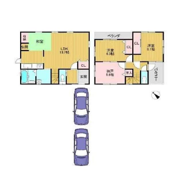 クローゼット/和室/電気/納戸/全居室収納/バルコニー2面以上